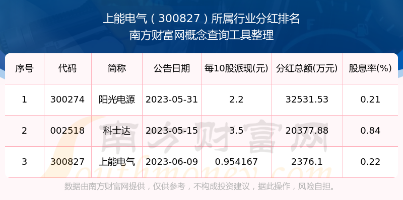 按照南方財富網(wǎng)趨勢選股系統(tǒng)統(tǒng)計,上能電氣所屬行業(yè)為光伏逆變器行業(yè),光伏逆變器行業(yè)分紅排名情況如下表: