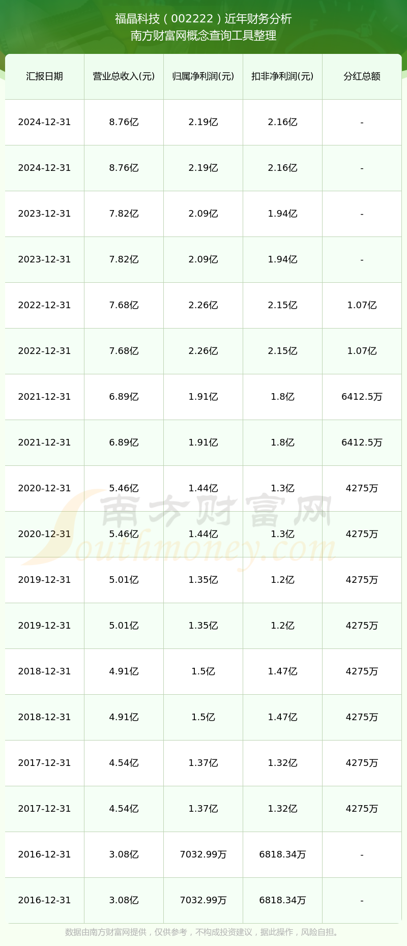福晶科技?xì)v年分紅派息情況如下表所示: