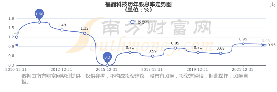 福晶科技?xì)v年股息率走勢(shì)如下圖: