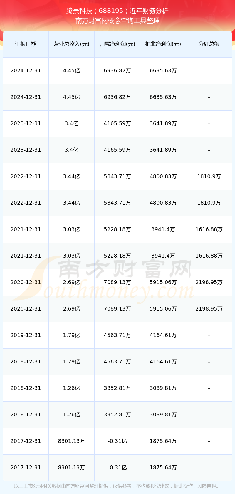 2024年騰景科技總營收4.45億,同比增長30.96%;凈利潤6936.82萬,同比增長66.53%;銷售毛利率37.6%。
