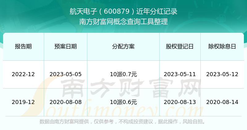 航天電子最新一次公布的分紅方案:10派0.7元。