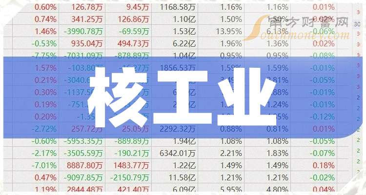 據(jù)南方財(cái)富網(wǎng)概念查詢工具數(shù)據(jù)顯示,核工業(yè)題材股有: