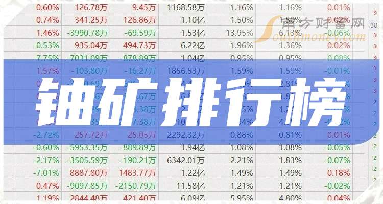 南方財(cái)富網(wǎng)概念查詢工具股票工具數(shù)據(jù)整理,截至11月4日,鈾礦企業(yè)市值排行榜前十依次是:中國廣核、中國核電、江西銅業(yè)、金鉬股份、海南礦業(yè)、江南化工、東方鋯業(yè)、中核科技、中鋼國際、萬里石。