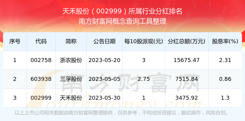 按照南方財(cái)富網(wǎng)趨勢(shì)選股系統(tǒng)統(tǒng)計(jì),天禾股份所屬行業(yè)為化肥行業(yè),化肥行業(yè)分紅排名情況如下表: