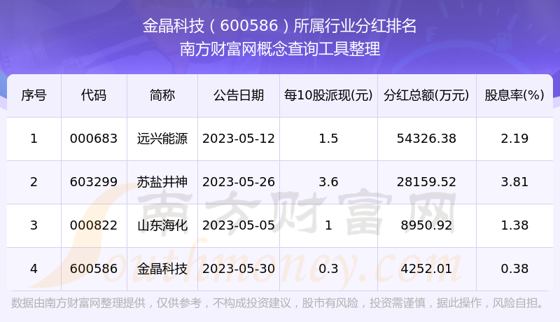 按照南方財(cái)富網(wǎng)趨勢選股系統(tǒng)統(tǒng)計(jì),金晶科技所屬行業(yè)為純堿行業(yè),純堿行業(yè)分紅排名情況如下表: