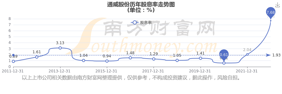 通威股份最新一次公布的分紅方案:10派28.58元。