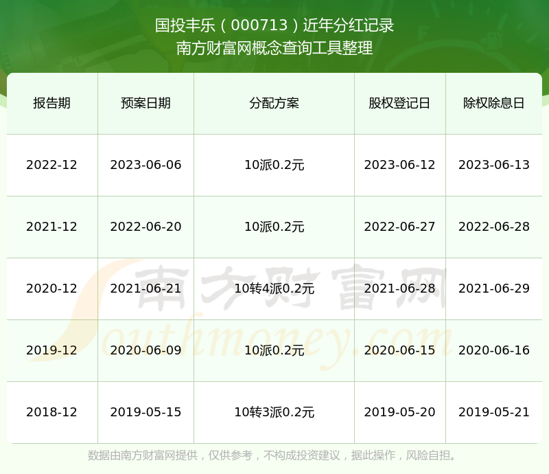 一、國投豐樂(000713)股票分紅記錄