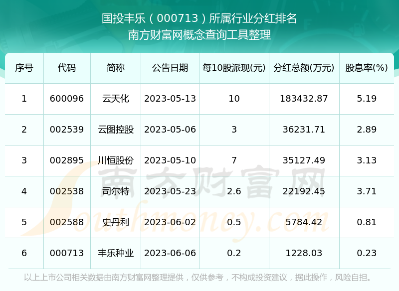 二、國投豐樂000713行業(yè)分紅排名