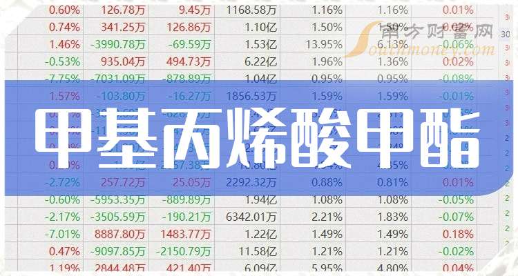 據(jù)南方財富網(wǎng)概念查詢工具數(shù)據(jù)顯示,甲基丙烯酸甲酯上市公司有: