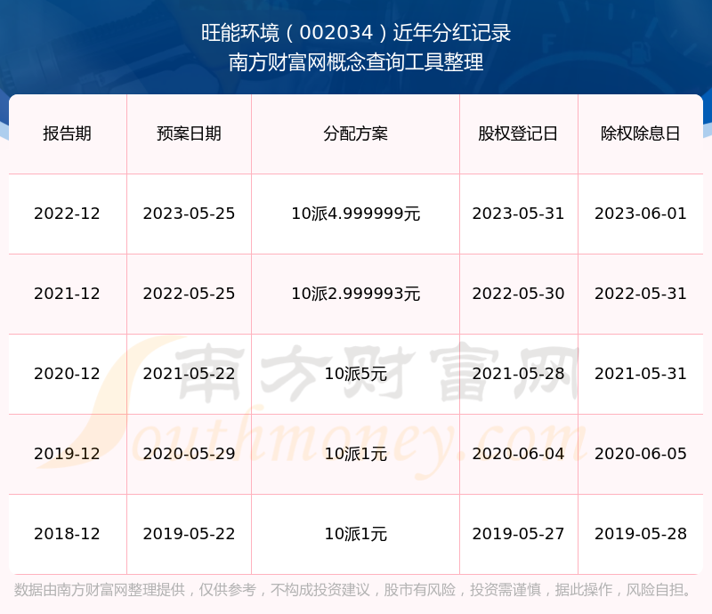 近年旺能環(huán)境分紅派息情況如下表所示: