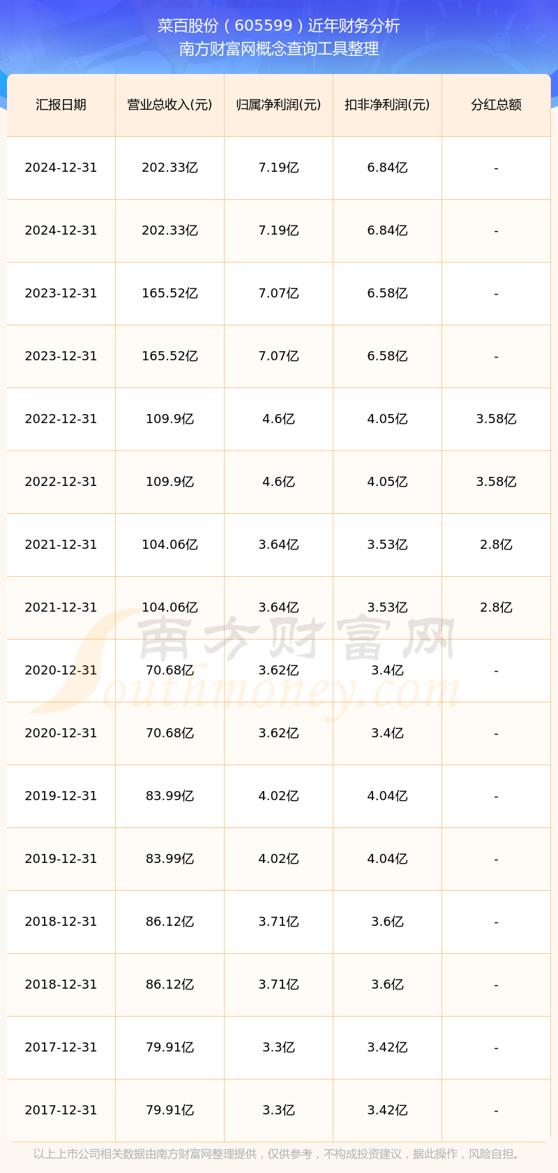近年菜百股份分紅派息情況如下表所示: