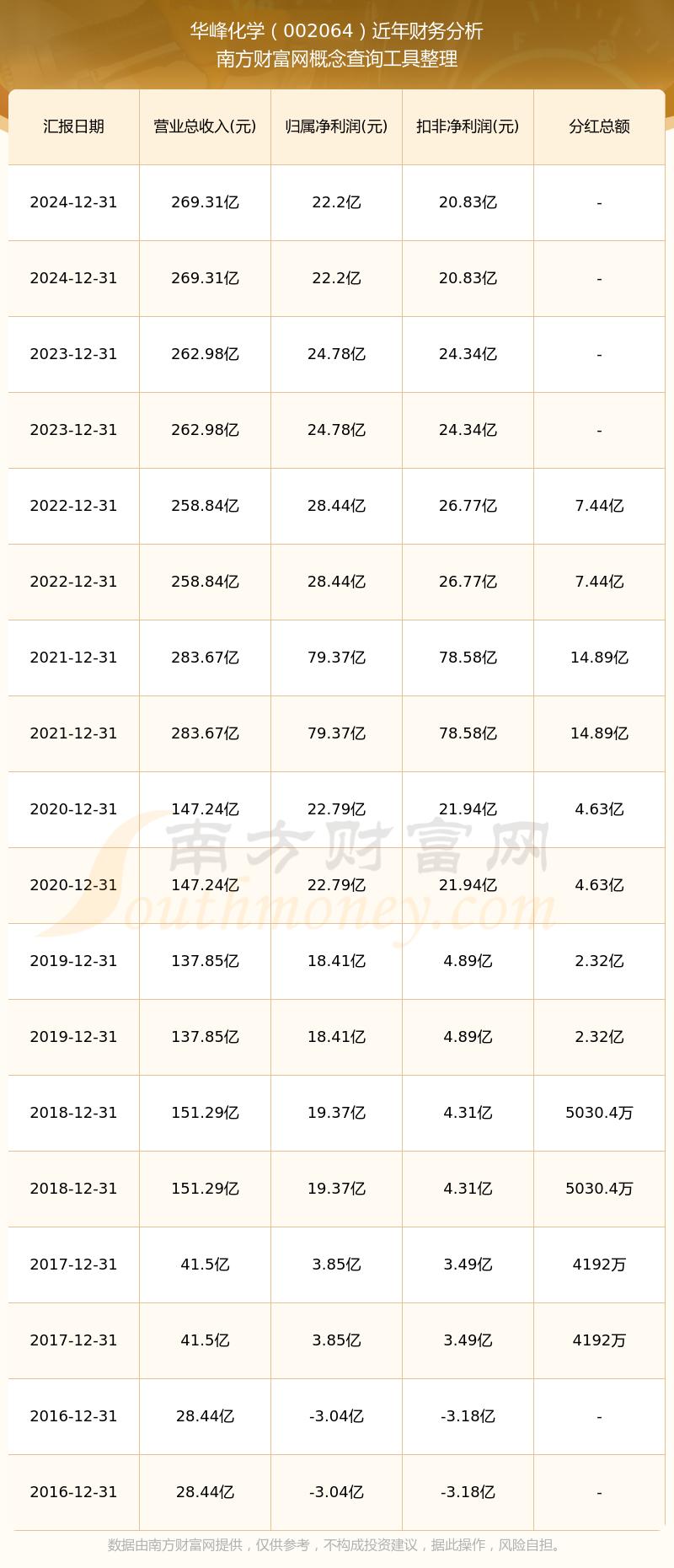 近年華峰化學分紅派息情況如下表所示: