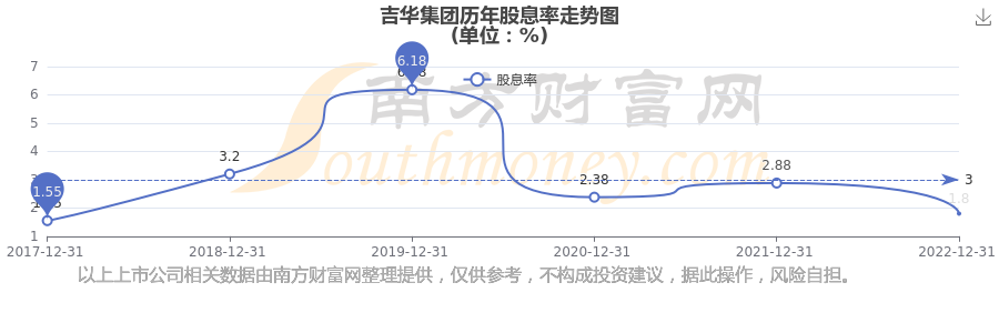 近年吉華集團(tuán)年度股息率走勢如下圖: