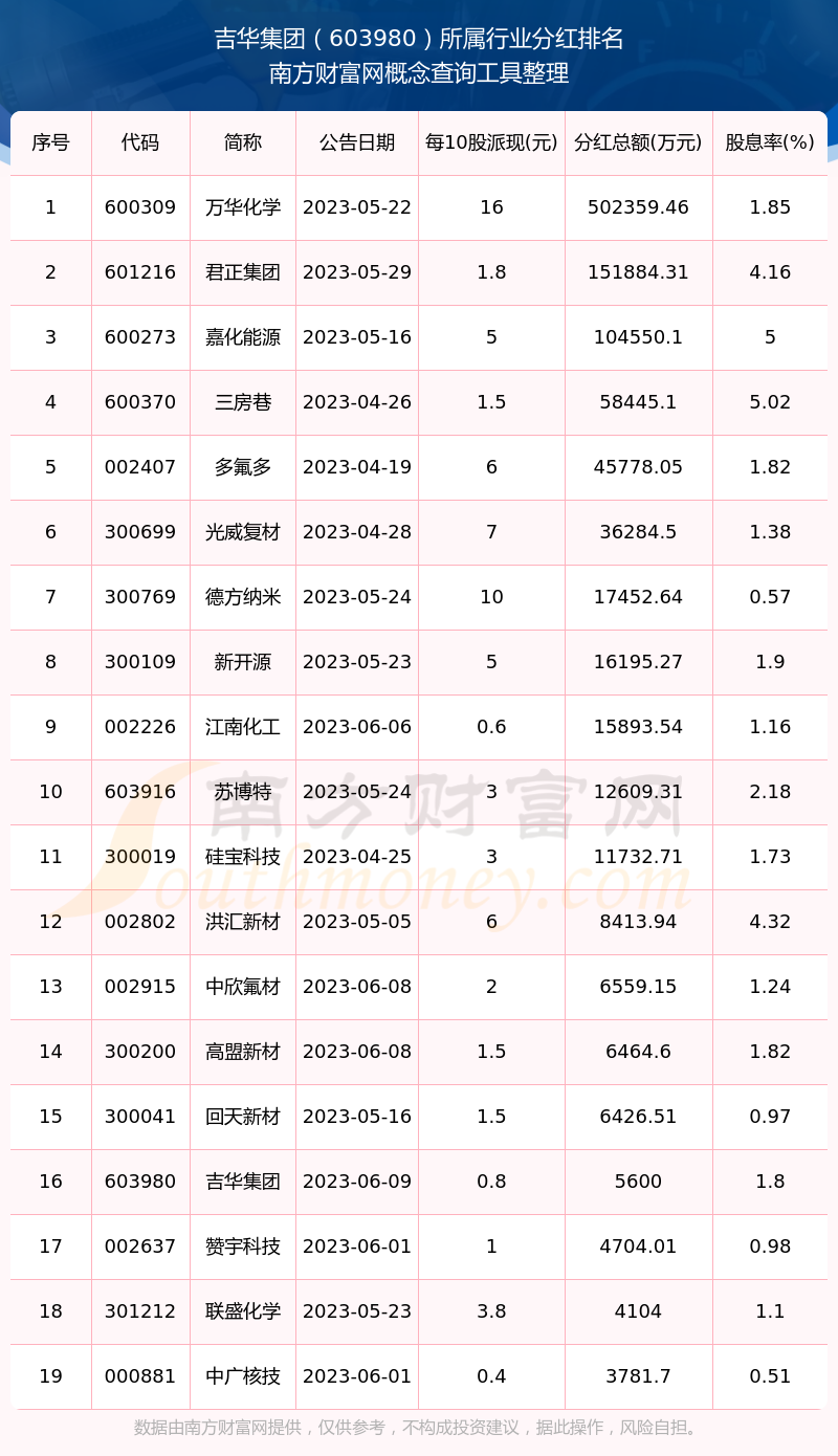 二、吉華集團(tuán)603980行業(yè)分紅排名