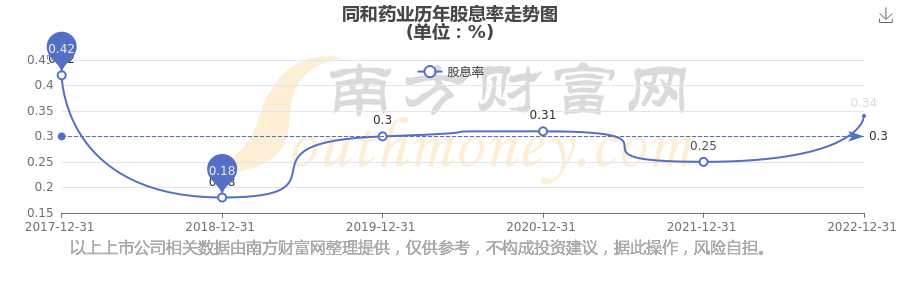近年同和藥業(yè)年度股息率走勢如下圖: