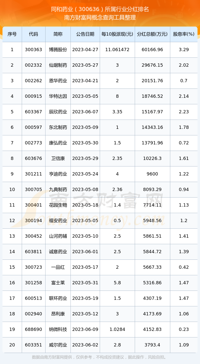 二、同和藥業(yè)300636行業(yè)分紅排名
