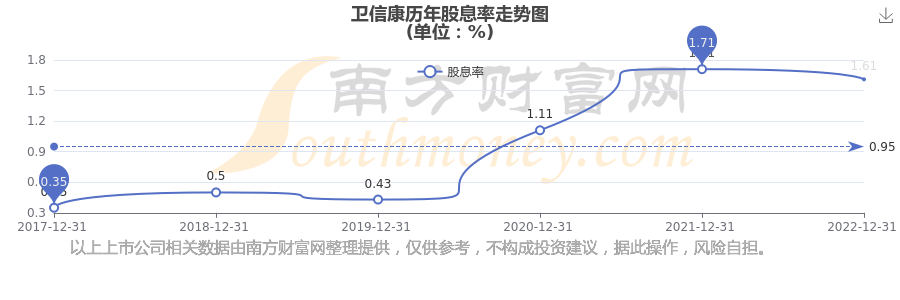衛(wèi)信康歷年股息率走勢(shì)如下圖: