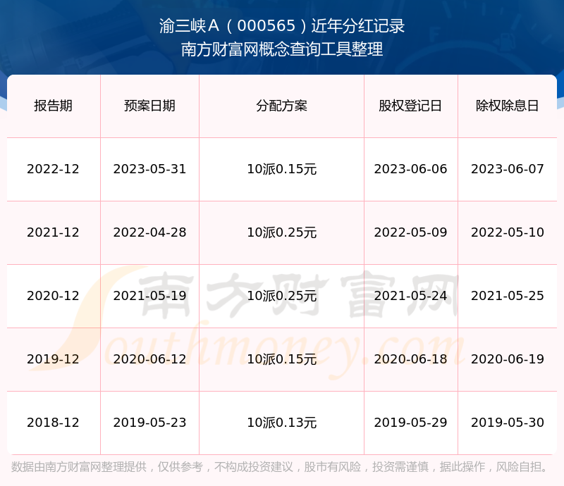 渝三峽A最新一次公布的分紅方案:10派0.15元。