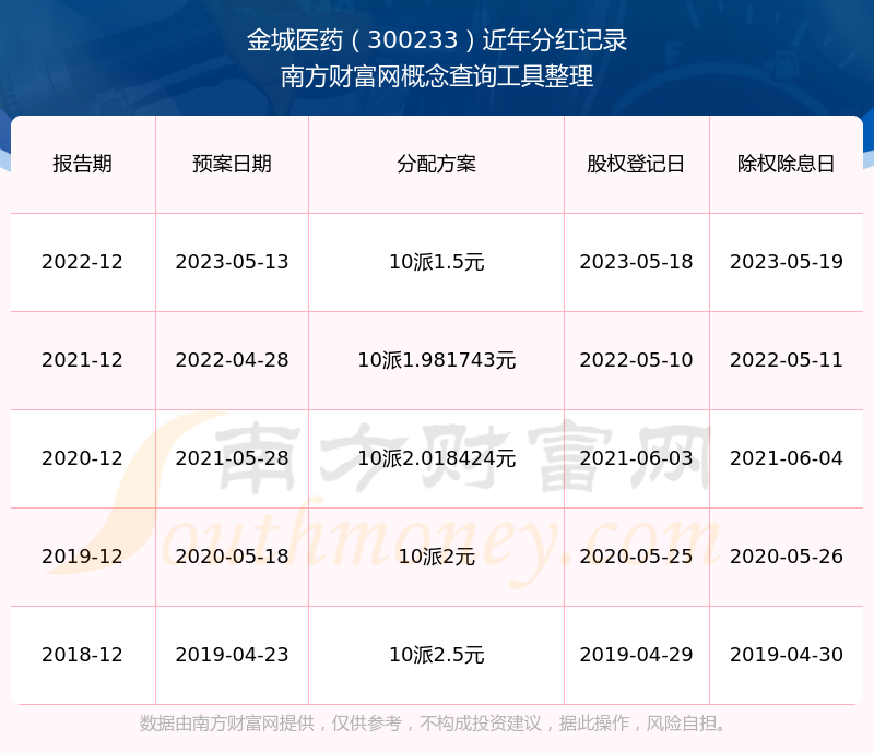 一、金城醫(yī)藥(300233)股票分紅記錄