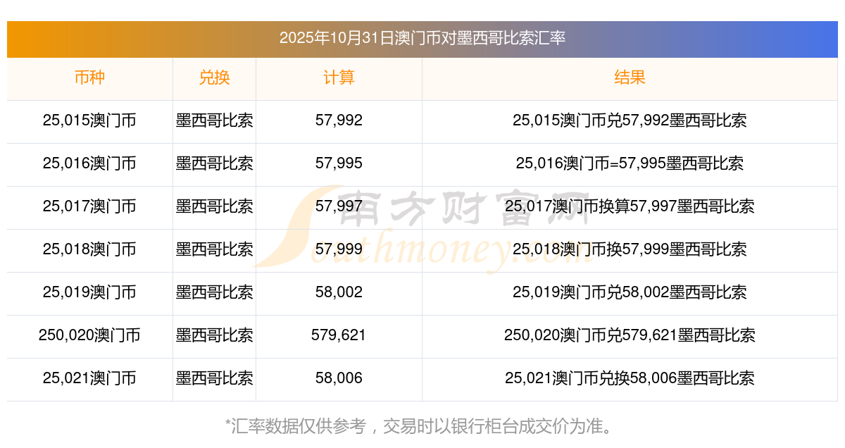 南方財富網(wǎng)為您提供澳門幣對墨西哥比索匯率最新價格詳情。