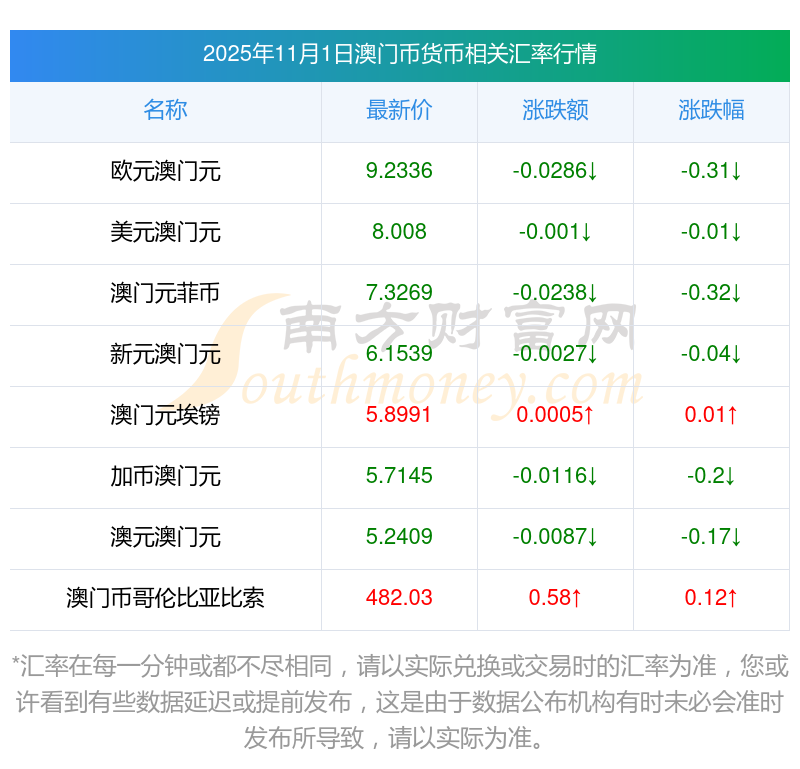 南方財富網為您提供澳門幣對新元匯率最新價格詳情。