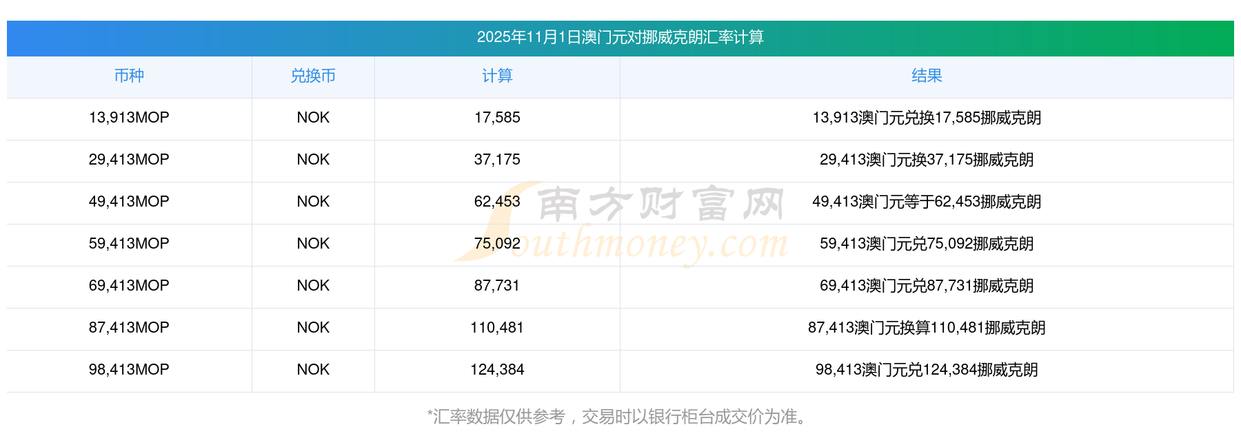 查詢2025年11月1日_1澳門元兌挪威克朗匯率
