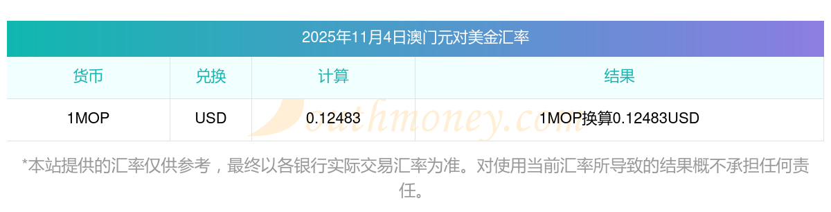 2025年11月4日匯率行情:37澳門元對(duì)美金匯率多少