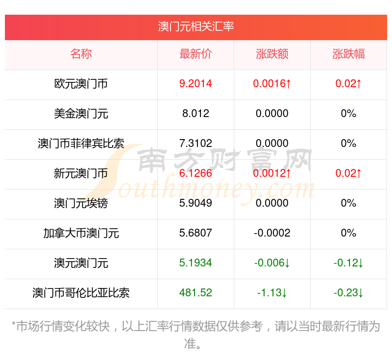 2025年11月5日澳門元相關(guān)匯率查詢