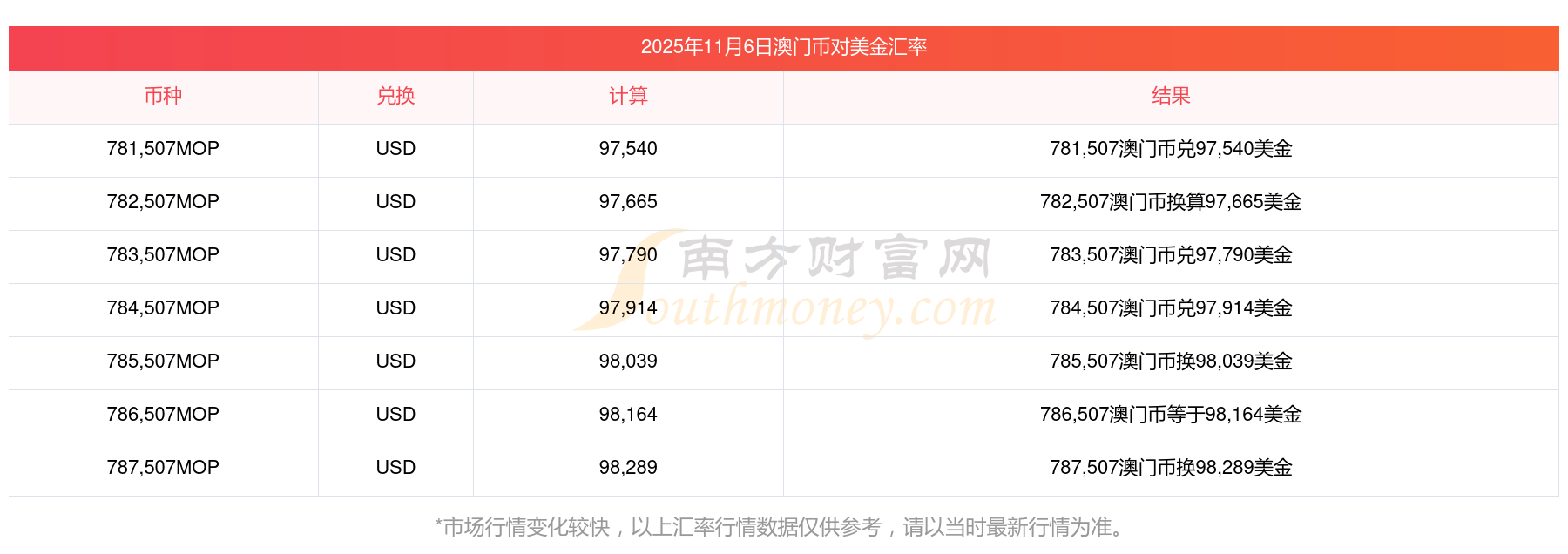 南方財富網為您提供澳門幣對美金匯率最新價格詳情。