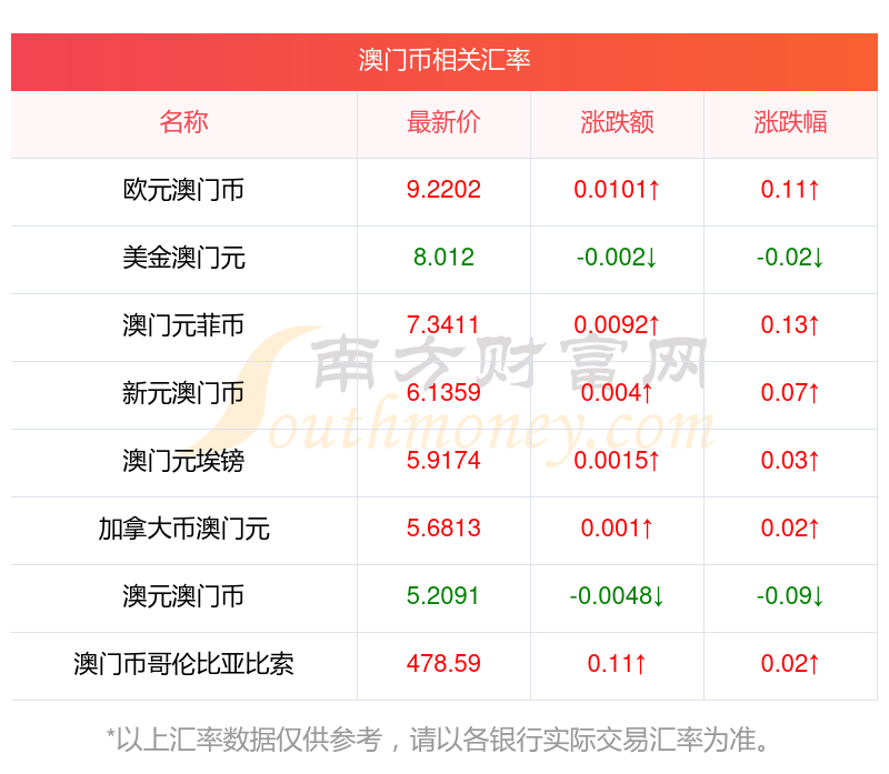 2025年11月6日澳門幣相關(guān)匯率查詢