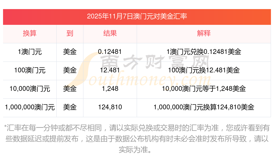 2025年11月7日匯率行情:39澳門(mén)元對(duì)美金匯率多少