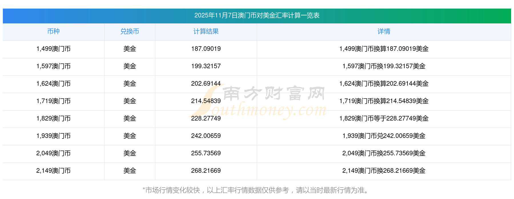 2025年11月7日匯率行情:45澳門幣對(duì)美金匯率多少