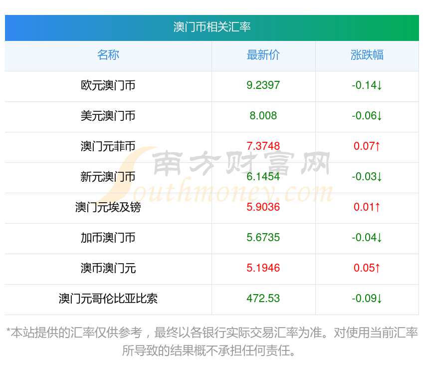 2025年11月7日澳門幣相關(guān)匯率查詢