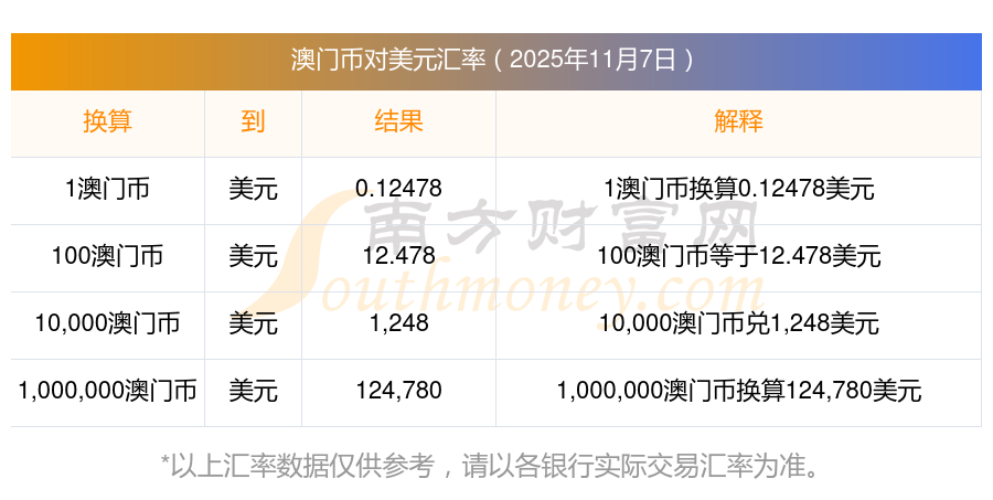 2025年11月7日匯率行情:37澳門幣對(duì)美元匯率多少