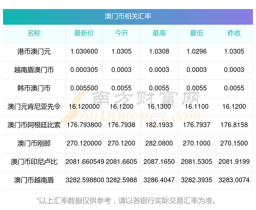 南方財富網(wǎng)為您提供澳門幣對雷亞爾匯率最新價格詳情。