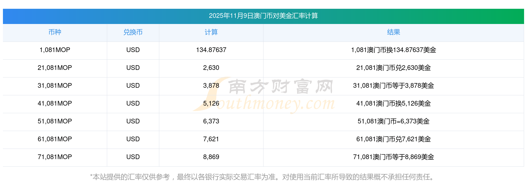 2025年11月9日匯率行情:40澳門(mén)幣對(duì)美金匯率多少