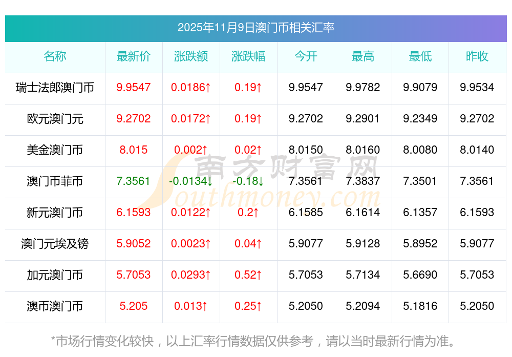 2025年11月9日澳門(mén)幣相關(guān)匯率查詢(xún)