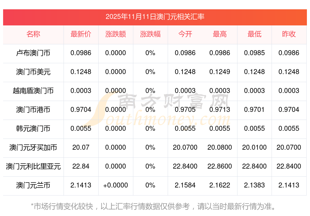 2025年11月11日澳門元相關(guān)匯率查詢
