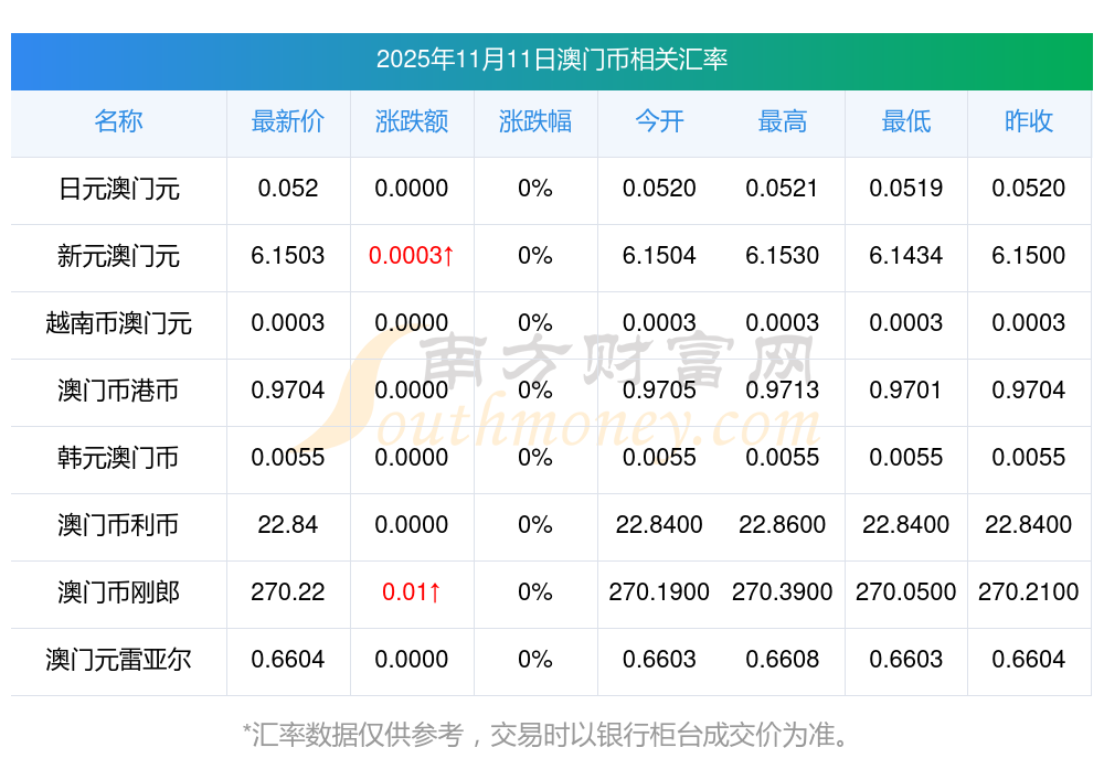 2025年11月11日澳門幣相關(guān)匯率查詢