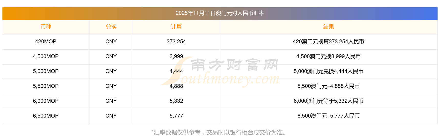 2025年11月11日匯率換算:50澳門(mén)元對(duì)換人民幣匯率是多少?