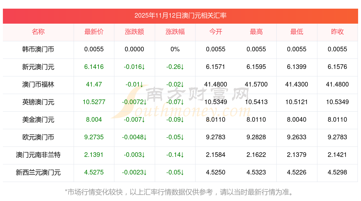 2025年11月12日澳門(mén)元相關(guān)匯率查詢