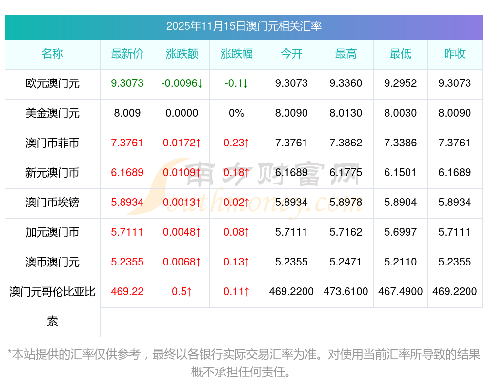 2025年11月15日澳門(mén)元相關(guān)匯率查詢