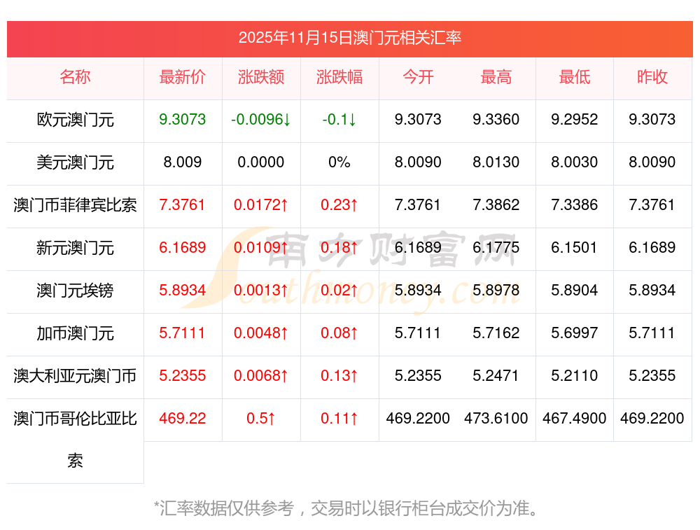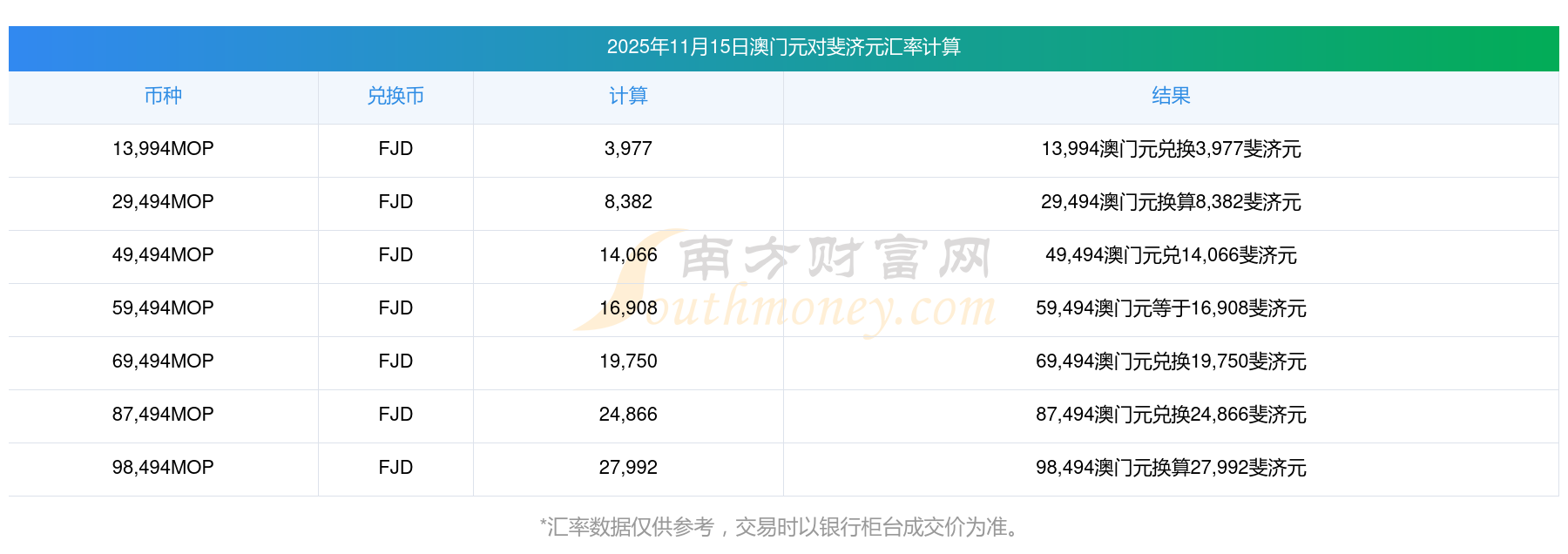 今日澳門元對斐濟(jì)元_匯率價多少?2025-11-15