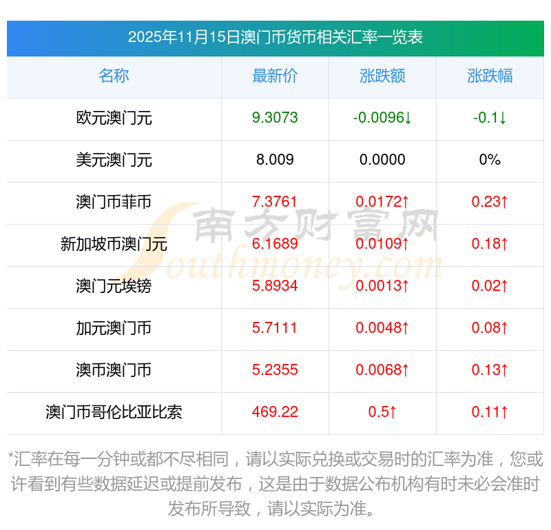 2025年11月15日澳門幣相關(guān)匯率查詢