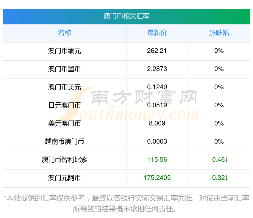 2025年11月15日澳門幣相關(guān)匯率查詢