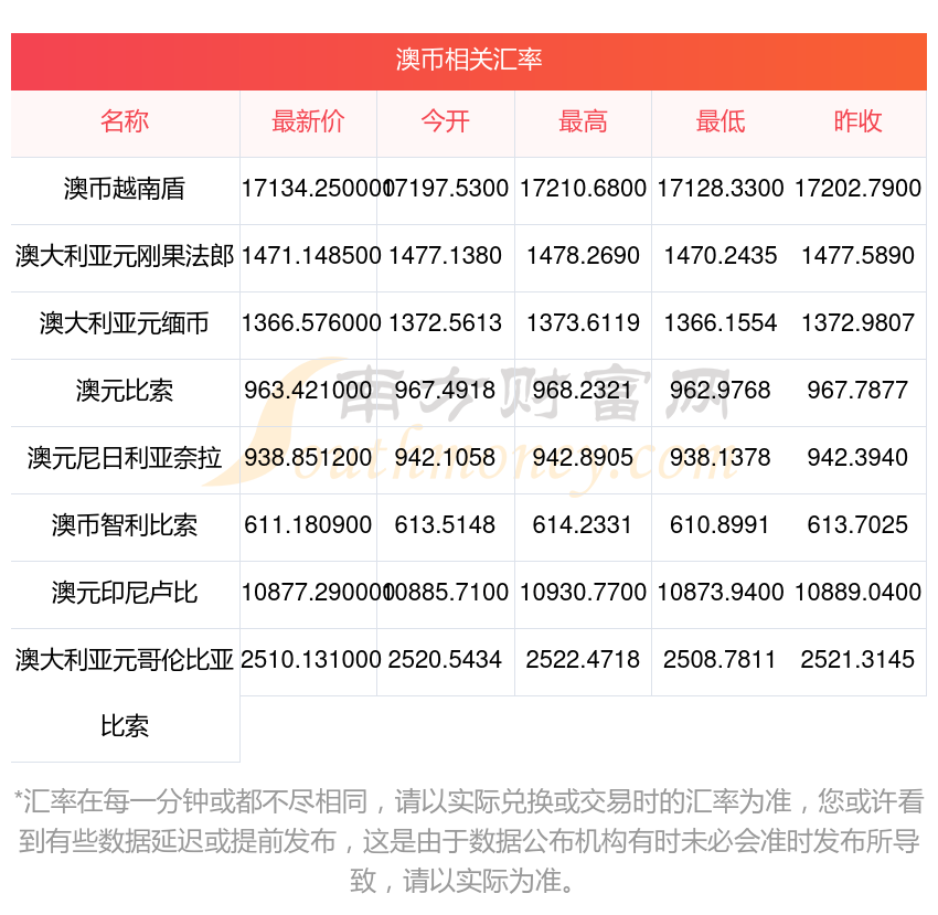 2025年11月4日澳幣相關(guān)匯率查詢
