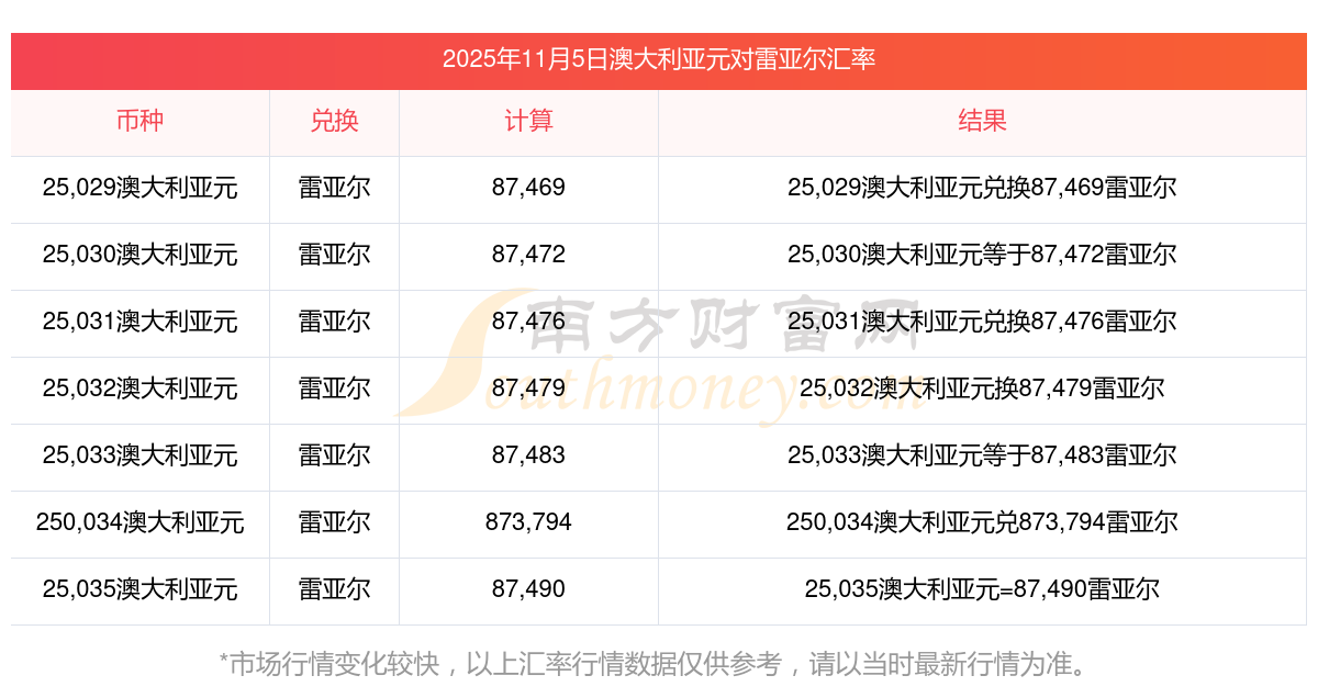 2025年11月5日_今日匯率澳大利亞元對雷亞爾匯率查詢