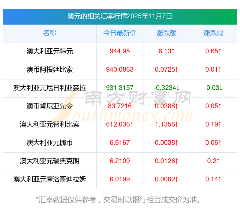 根據(jù)2025年11月7日匯率,澳元兌換斐濟幣匯率最新1.482100,今開1.4811,昨收1.4811,最高1.4984,最低1.4799。
