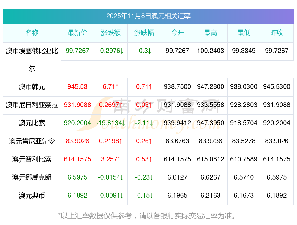 2025年11月8日澳元相關(guān)匯率查詢