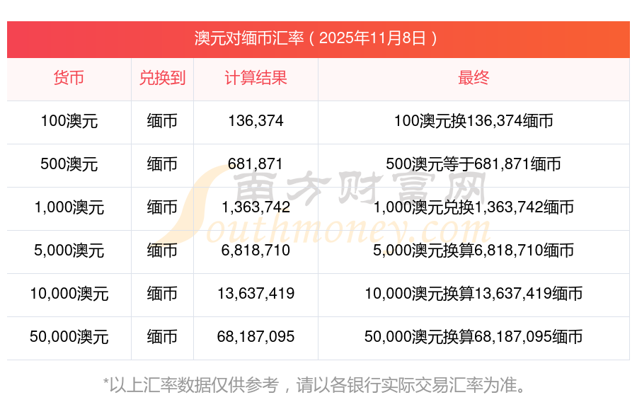 11月8日澳元對(duì)緬幣的匯率多少?